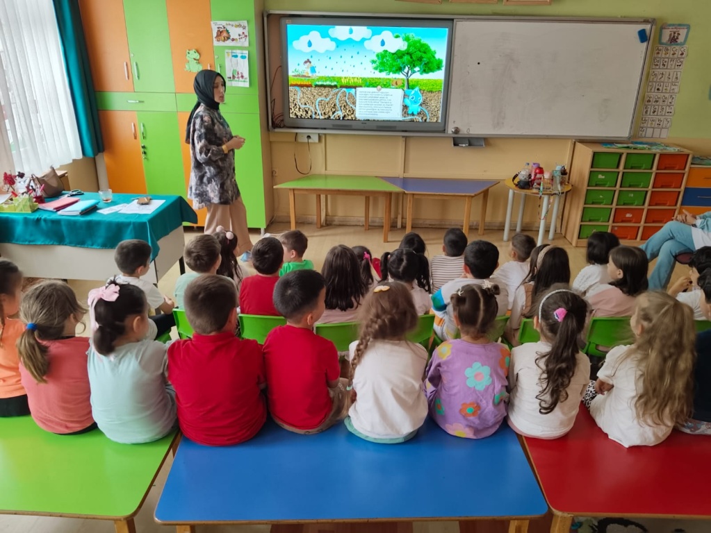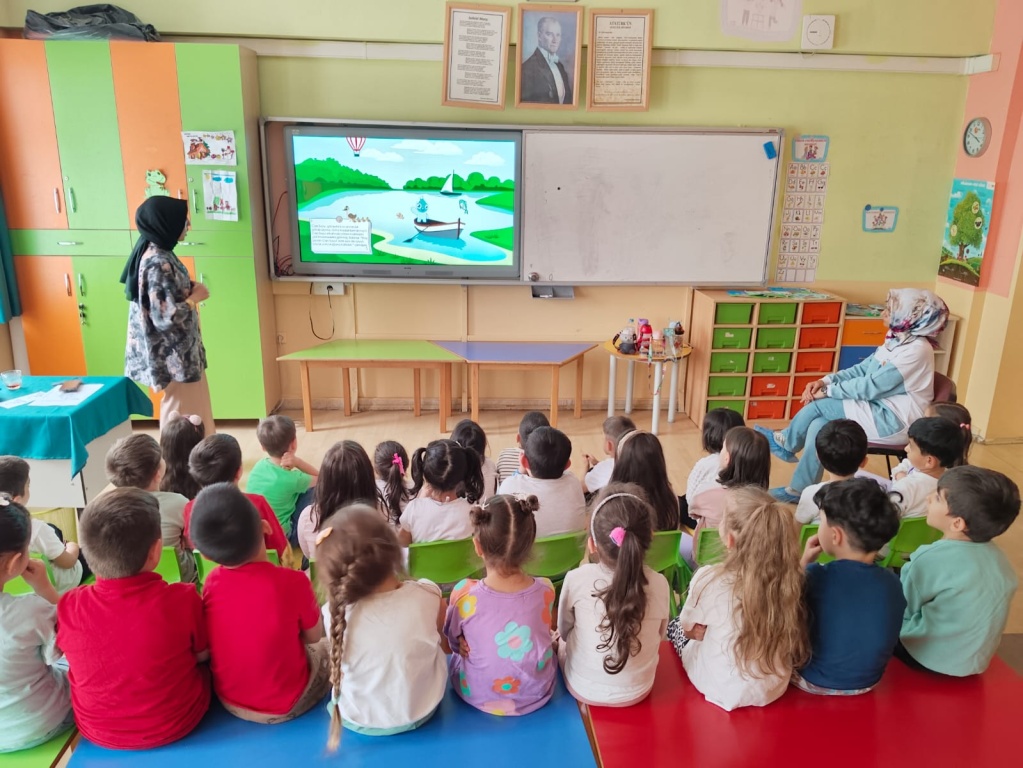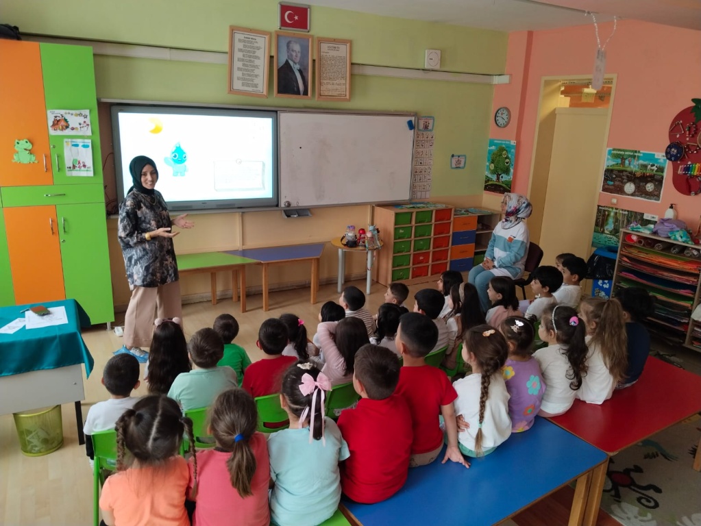 "Su Verimliliği Seferberliği" kapsamında eğitici eğitimlerine katılan okulumuz anasınıfı zümre başkanı Leyla Keskioğlu anasınıfı ögretmen ve öğrencilerimize bu konuda bir eğitim sunumu yaptı. Okulda ve evde bilinçli tüketici olunabilmesi için gereken önlemleri alma, tasarruflu kullanım kurallarına uyma konusunda farkındalık oluşması sağlanmıştır.